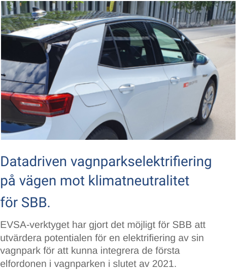 Låt oss hjälpa dig att ta relevanta beslut om vilka elbilar som ska ersätta din fossila utifrån verklig data som ackumuleras från ert nuvarande körmönster.