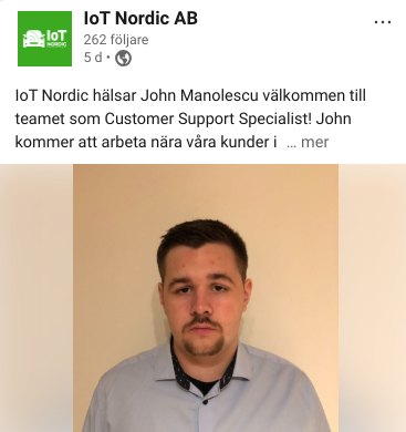 Vi lever i en mycket spännande men snabbföränderlig värld där det enskilt största hotet mot vår framtid är klimatet där 2045 är året då vi ska vara klimatneutrala ifall de globala målen ska nås. Med denna bakgrund ser jag som min mission att bidra med den kompetens jag samlat på mig inom IT och fordonsbranschen för att snabba på omställningen av tranportsektorn som idag står för hela 33% av Sveriges CO2 utsläpp. Som förälder vill jag även efterlämna ett hållbarare samhälle för kommande generationer. Det är utifrån dessa värdegrunder som IoT Nordic har bildats och präglar de projekt vi involverar oss i.